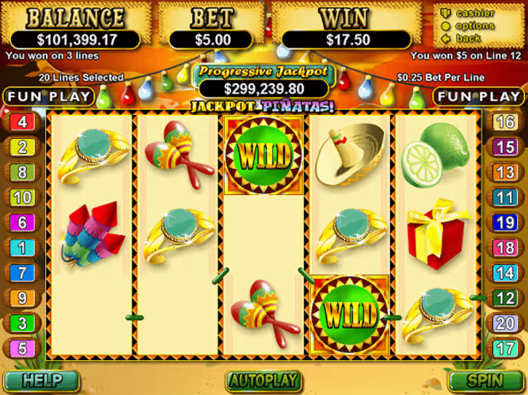 Picture this: you're at a lively Mexican fiesta, surrounded by colorful pinatas just waiting to burst open with treasures. That's the vibe Jackpot Pinatas Slots brings to your screen, a festive 5-reel video slot from Real Time Gaming packed with progressive jackpots and bonus excitement. If you're chasing that big-win rush without leaving your couch, this game delivers holiday cheer and regional flair that could turn a casual spin into a payout party.